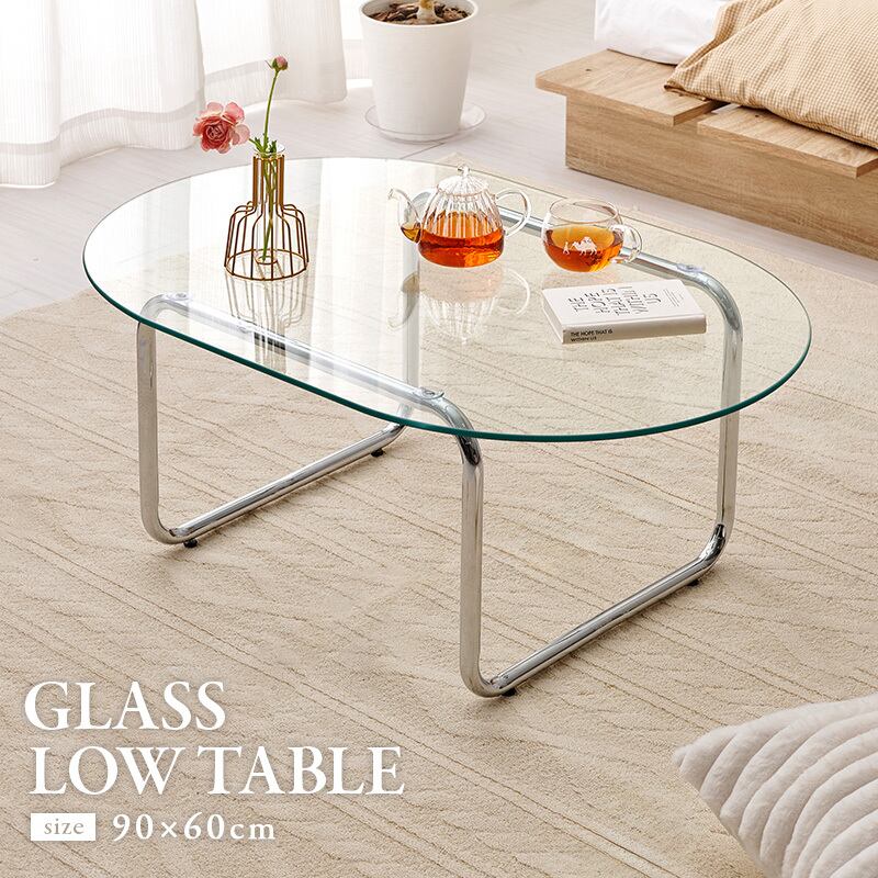 透明感のあるガラスの天板とメッキ加工をしたシルバーの脚がシンプルながらも存在感のあるテーブルです。