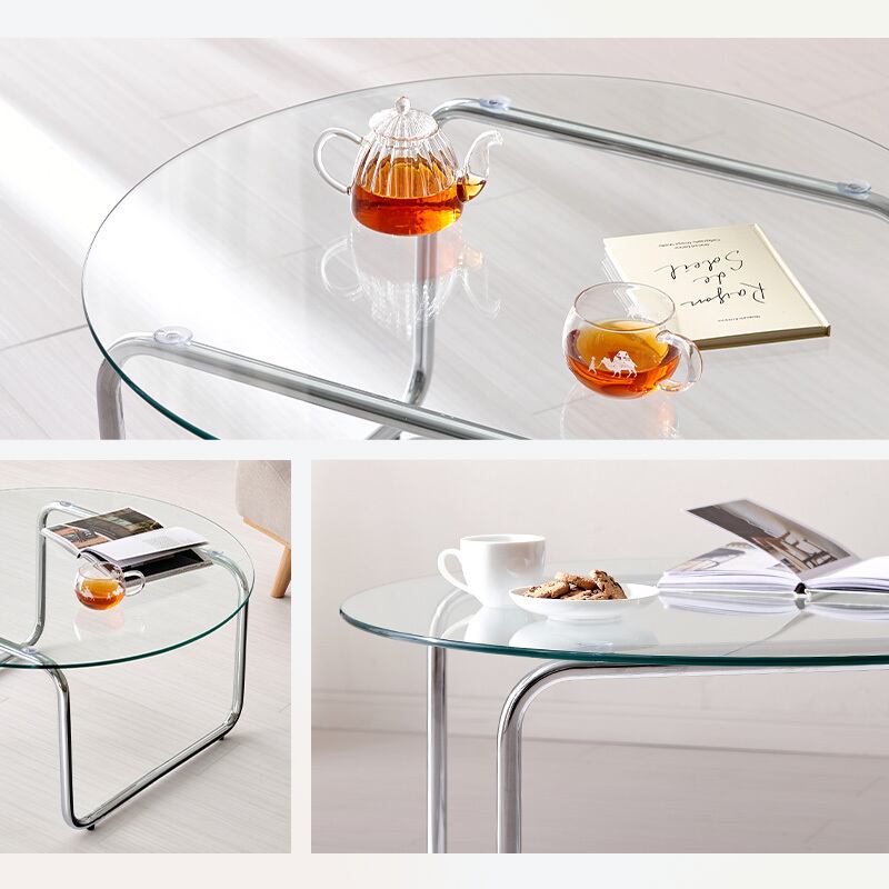 透明感のあるガラスの天板とメッキ加工をしたシルバーの脚がシンプルながらも存在感のあるテーブルです。